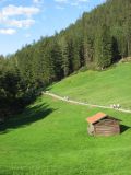 Nun brechen wir zu einem Käffele in Pfunds auf, und anschliessend ist Wandern angesagt.... Die einen wandern oben mit Rolf, die anderen mit Jaqueline unten durch den Wald, aber es kommen doch alle zur richtig idyllisch gelegenen Fischerhütte mit toller Veranda.