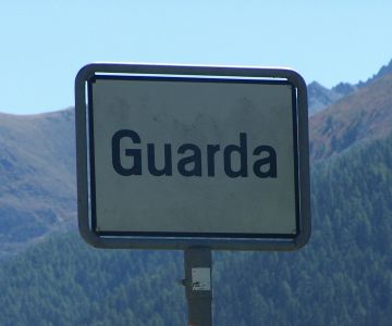 Langsam meldet sich das Mägeli, wir wollen in Guarda zu Mittag essen. Da wurden wir noch fast Teilnehmer eines Mountain-Bike-Rennens, die dortigen Anfeurer hatten sich mit riesigen Kuhglocken bewaffnet, was sehr eindrücklich tönte.