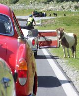 Bei strahlendem Sonnenschein gehts dann auf zur Silvretta-Hochalpenstrasse... ups... ein Karmann will nicht anspringen.... Ralf, Fritz und das gute Händchen von Liliane halfen dem hellblauen Karmann wieder auf die Sprünge...